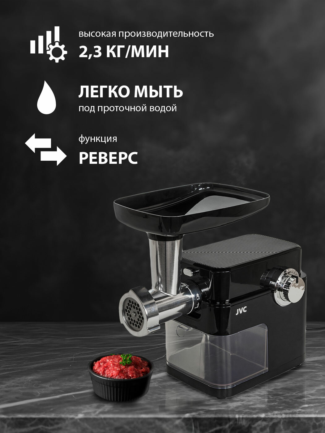 Отзывы на Мясорубка JVC с реверсом, корпус с контейнером для фарша, решетки 3, 5 и 7 мм, насадки для колбасок и кеббе, нож из нержавеющей стали, 2000 Вт