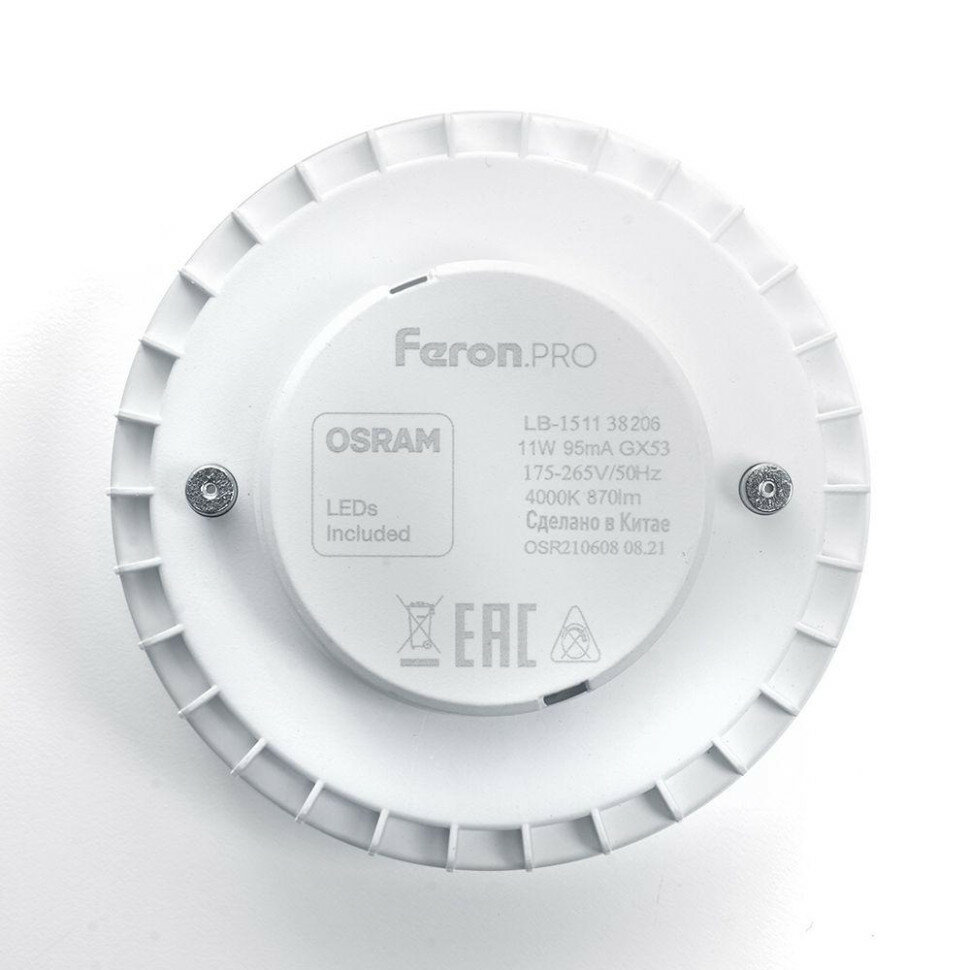 (15 шт.) Светодиодная лампочка Feron.PRO GX53 11W(870lm) 4000K 4K матовая 73x26 OSRAM LED LB-1511 38206