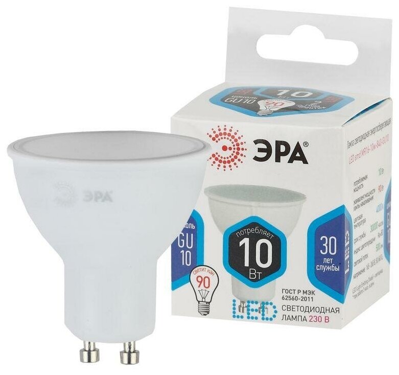 Лампа светодиодная MR16-10W-840-GU10 800лм ЭРА Б0032998 информация: