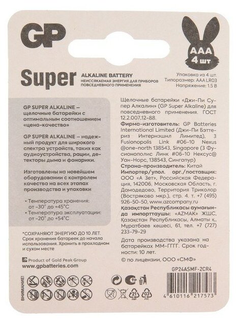 Отзывы на Батарейка алкалиновая Super, AAA, LR03-4BL, 1.5В, блистер, 4 шт.