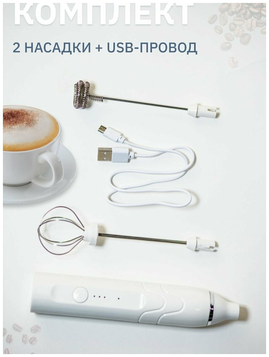 Капучинатор USB 2 насадки, белый / Вспениватель для молока и сливок /Беспроводной/ информация: