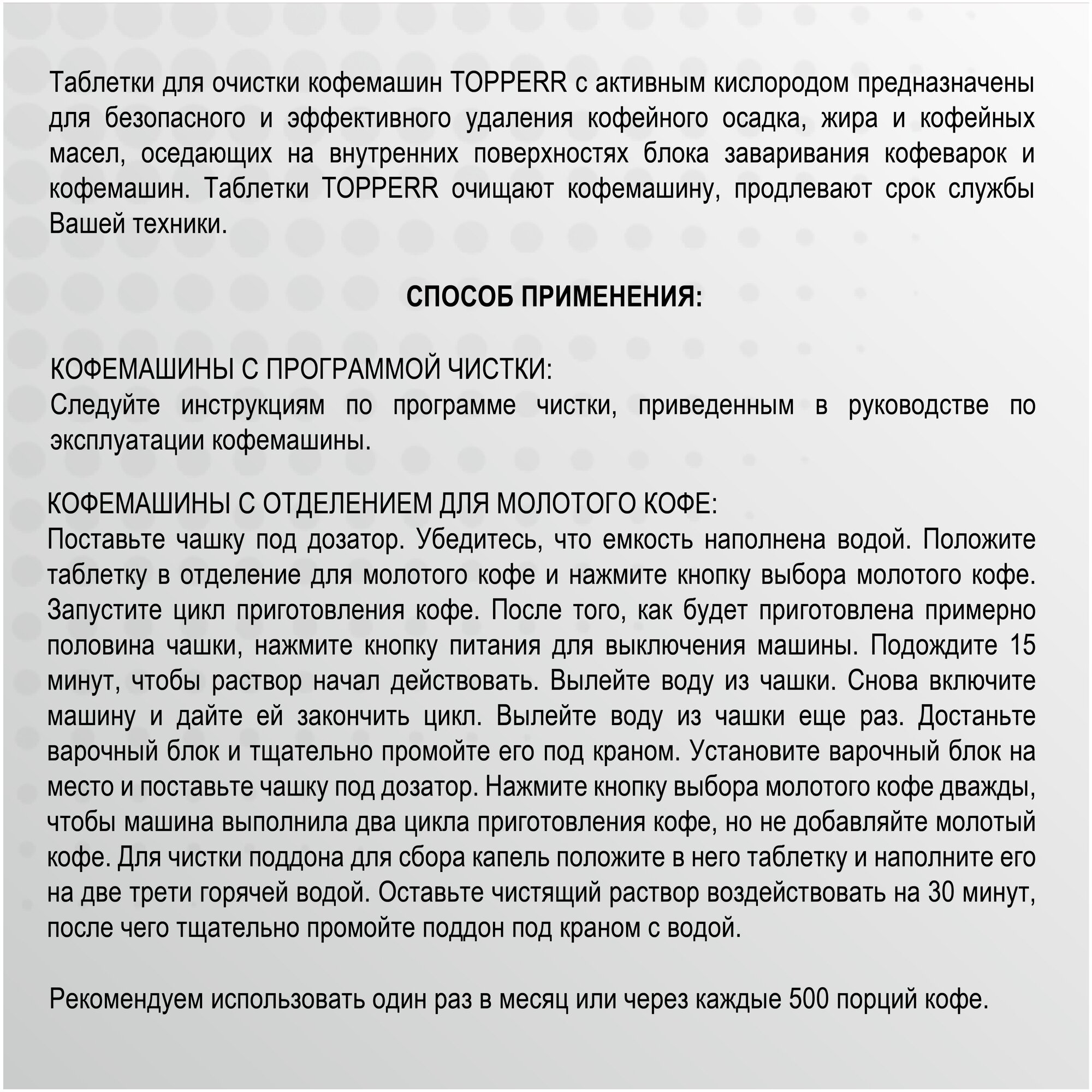 Topperr Таблетки для очистки кофе машин от масел, 20 шт. х 1 г, 30372 информация: