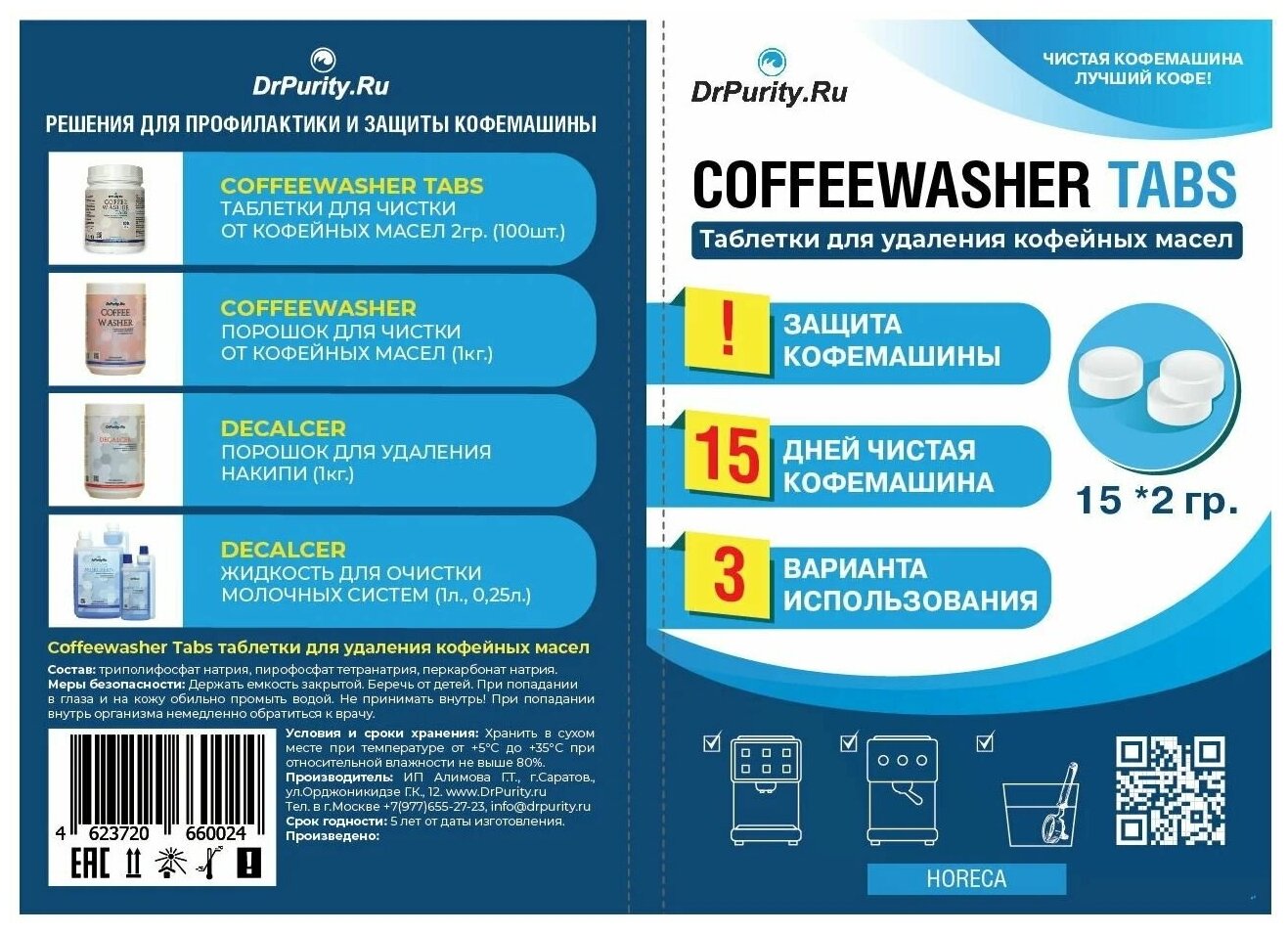 Таблетки для очистки от кофейных, эфирных масел для автоматических и традиционных кофемашин 30 шт по 2гр. информация: