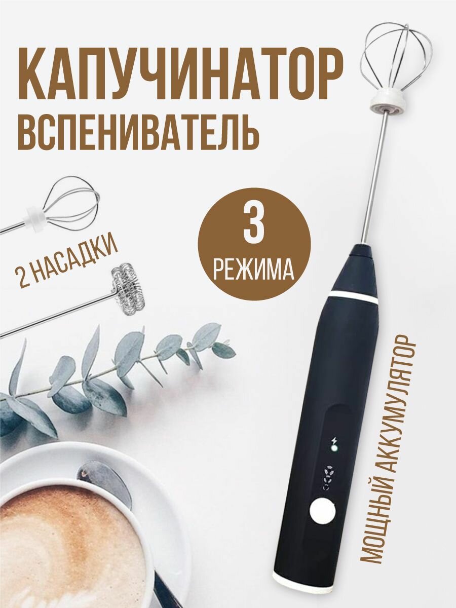 10 цен на Капучинатор электрический беспроводной / Вспениватель молока ручной / Миксер с венчиком 2 насадки