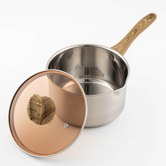 Ковш из нержавеющей стали для молока, d=17.5, стеклянная крышка, пластиковая ручка, 304 сталь, толщина 0.5 мм, индукция информация: