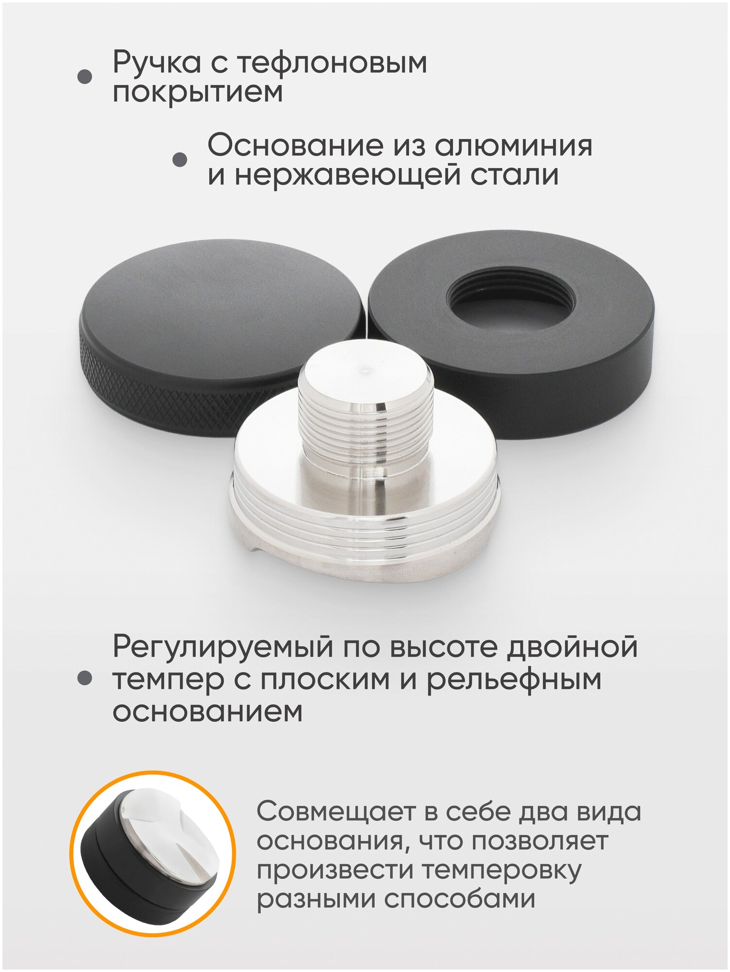 Пуш темпер 58 мм, разравниватель для кофе 470 грамм информация: