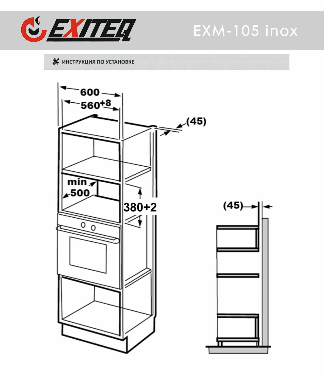Микроволновая печь встраиваемая EXITEQ EXM-105 информация: