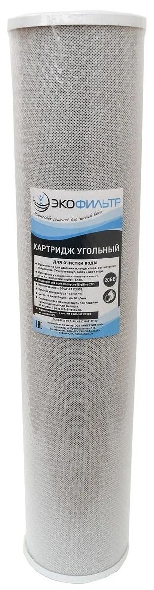 Угольный картридж для воды экофильтр Карбон-блок эфаум 112/508, BB20" информация: