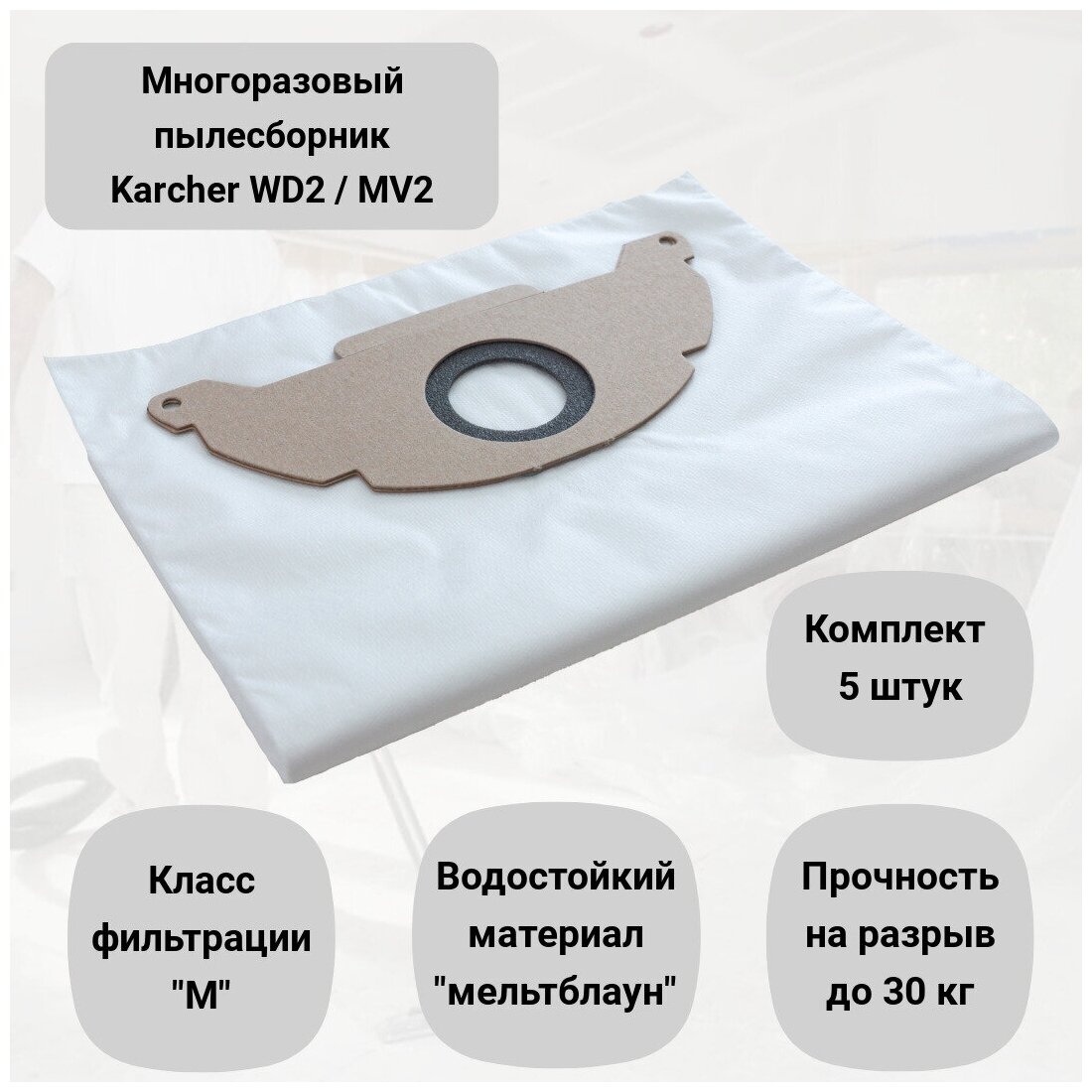 Пылесборники для пылесоса KARCHER WD 2, МV 2, WD 2.200 одноразовые синтетические мешки ROCKSTAR К1(5), комплект 5 шт. информация: