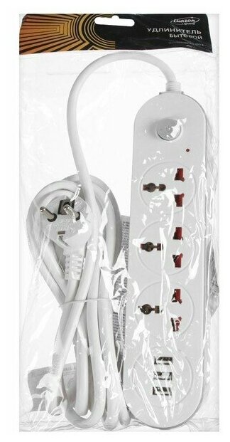 10 цен на Удлинитель Luazon Lighting, 3 унив. роз., 3м,10А,2200Вт, ПВС 2х0.75 мм2, 3хUSB, с выкл., Б Luazon Li