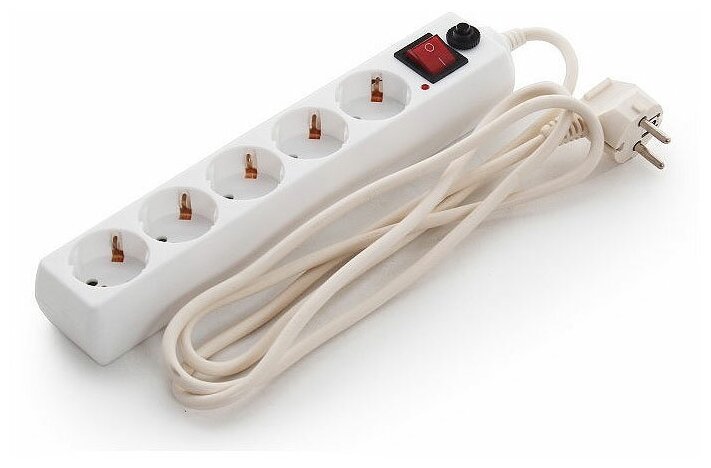 Удлинитель бытовой GES-10-2x075-5-5m, 10А, 2х0,75 мм2, 5 мест, 5 метров, без заземления