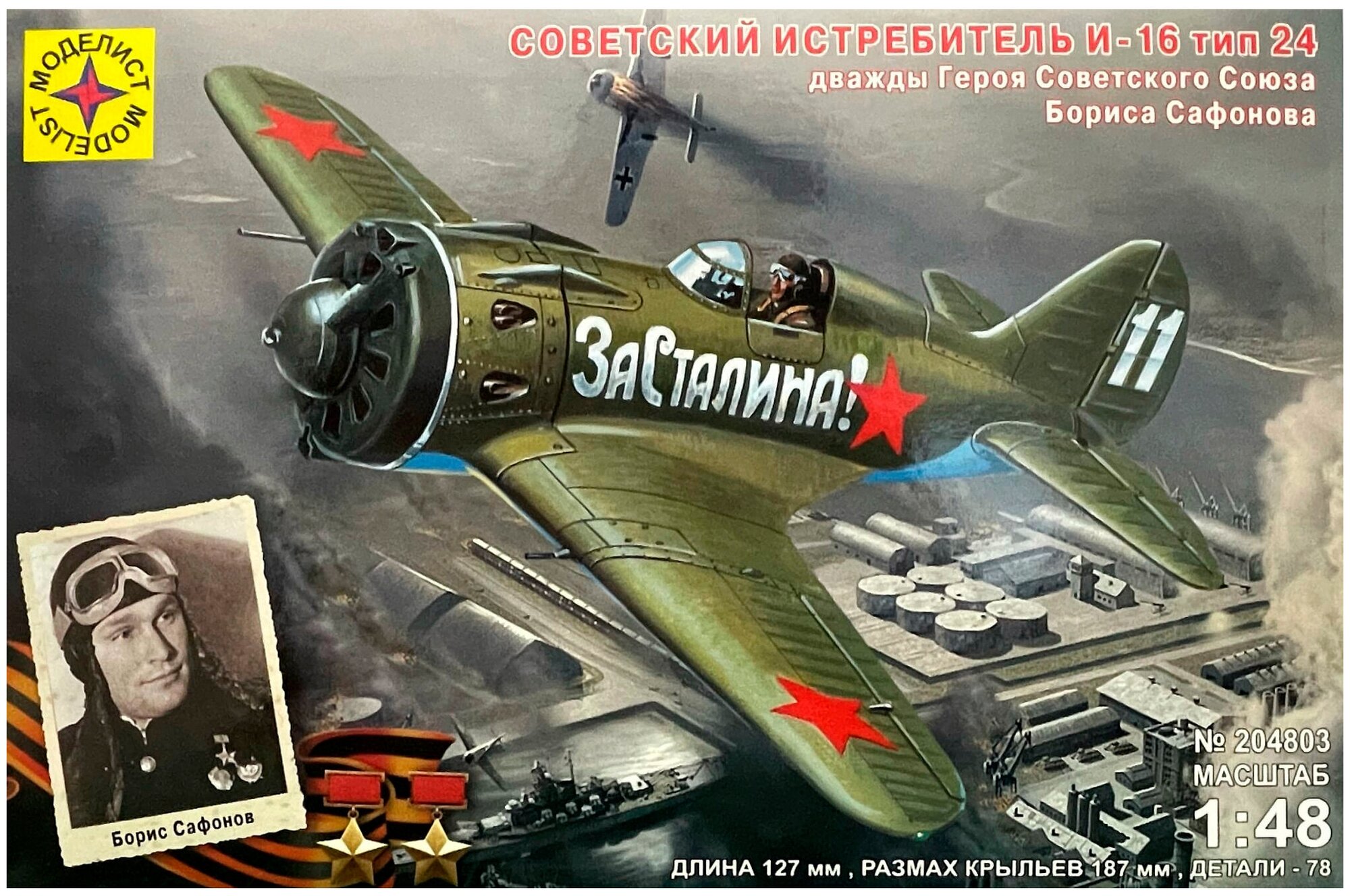 Сборная модель Моделист Истребитель И-16 тип 24 дважды Героя Советского Союза Бориса Сафонова, 1/48 204803