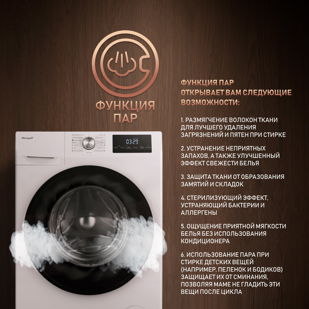 Фронтальная стиральная машина Weissgauff WM 61410 Inverter Steam информация:
