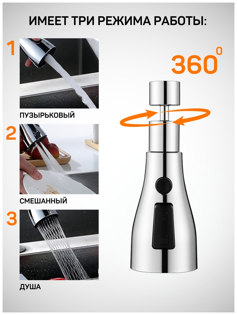 Насадка на смеситель, поворотная / Распылитель для крана, 3 режима струи воды информация: