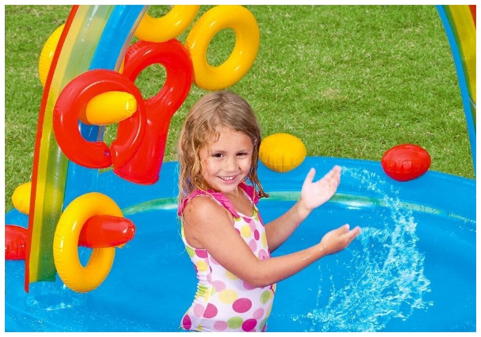 Отзывы на Надувной игровой центр с бассейном 297х193х135см, Радуга, от 2 лет, макс. нагрузка 81 кг.,без насоса, intex 57453