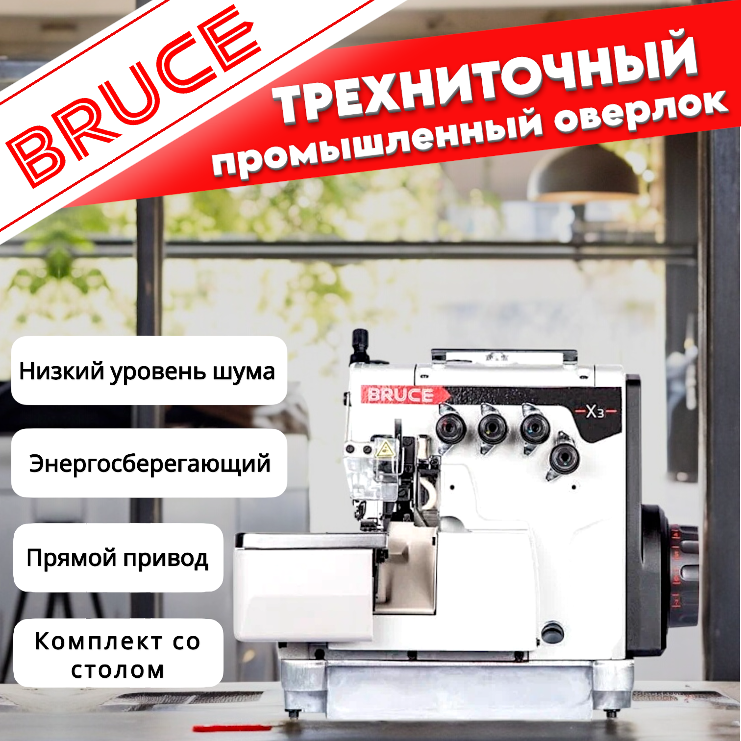 Трехниточный промышленный оверлок Bruce X3-3-M2-04/ для легких и средних материалов информация: