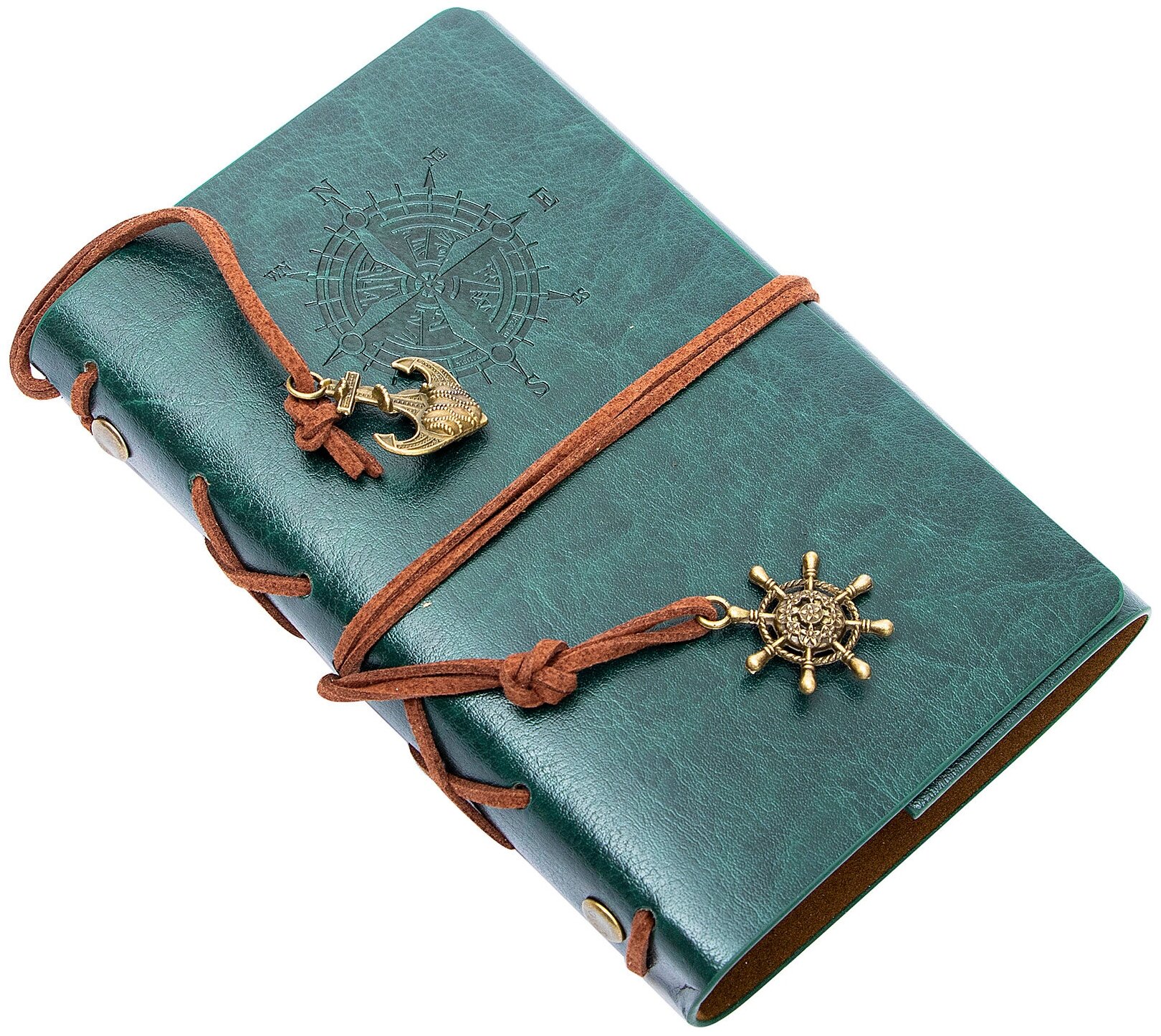 10 цен на Блокнот, записная книжка, ежедневник, тетрадь на кольцах, со сменным блоком, крафт страницы, экокожа Эврика (Морской волк 12х18 см, зеленый)