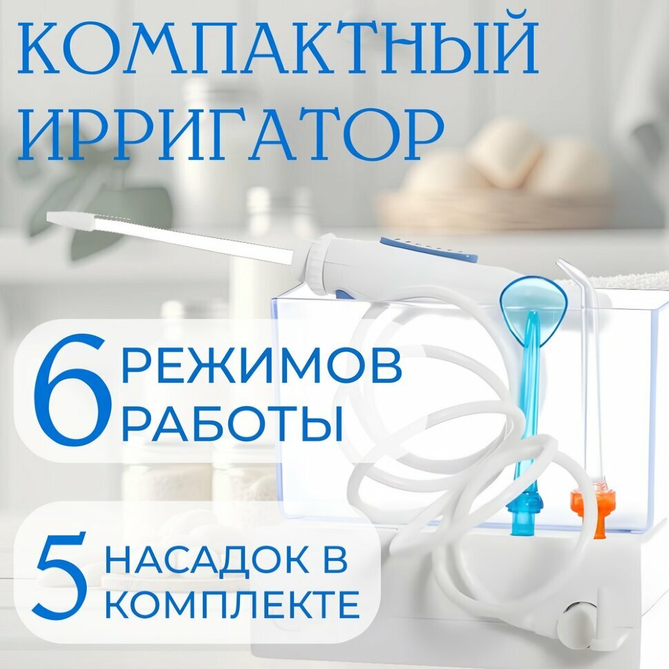 Ирригатор для полости рта портативный/для зубов,6 сменных насадок, 3 режимов для чистки зубов и брекетов языка