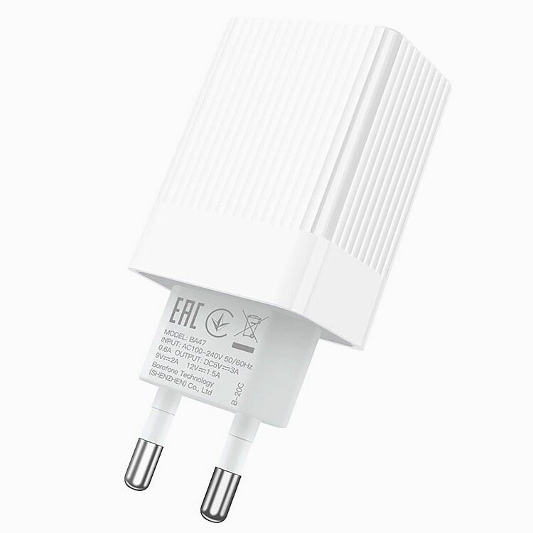 Сетевое зарядное устройство USB Borofone BA47A (3А/QC3.0) <белый> информация:
