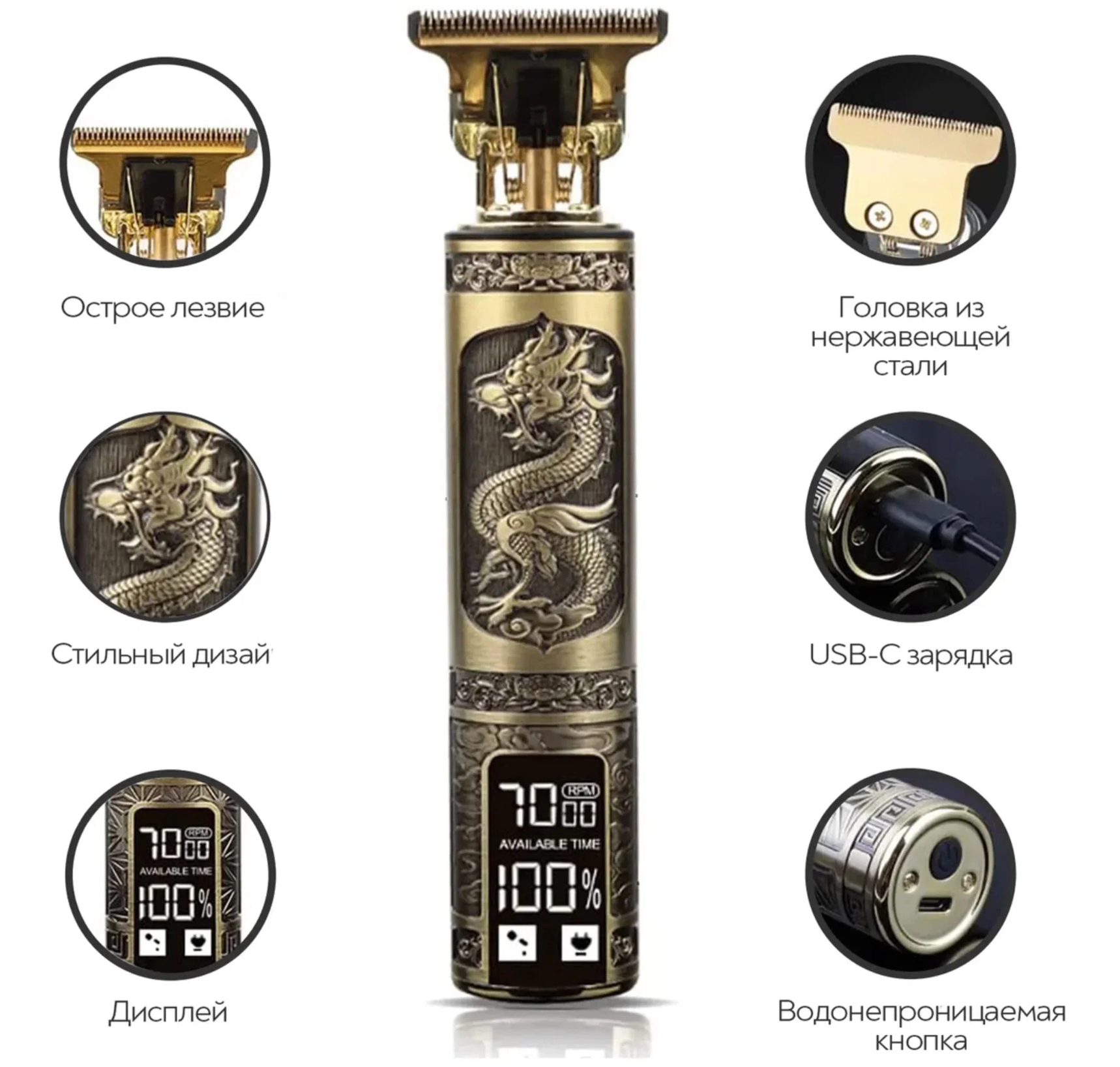 10 цен на Триммер дракон для бороды и усов с LED-дисплеем LFQ-666-37, золотой