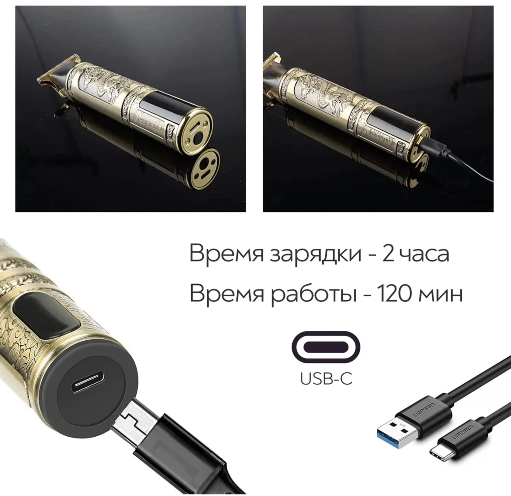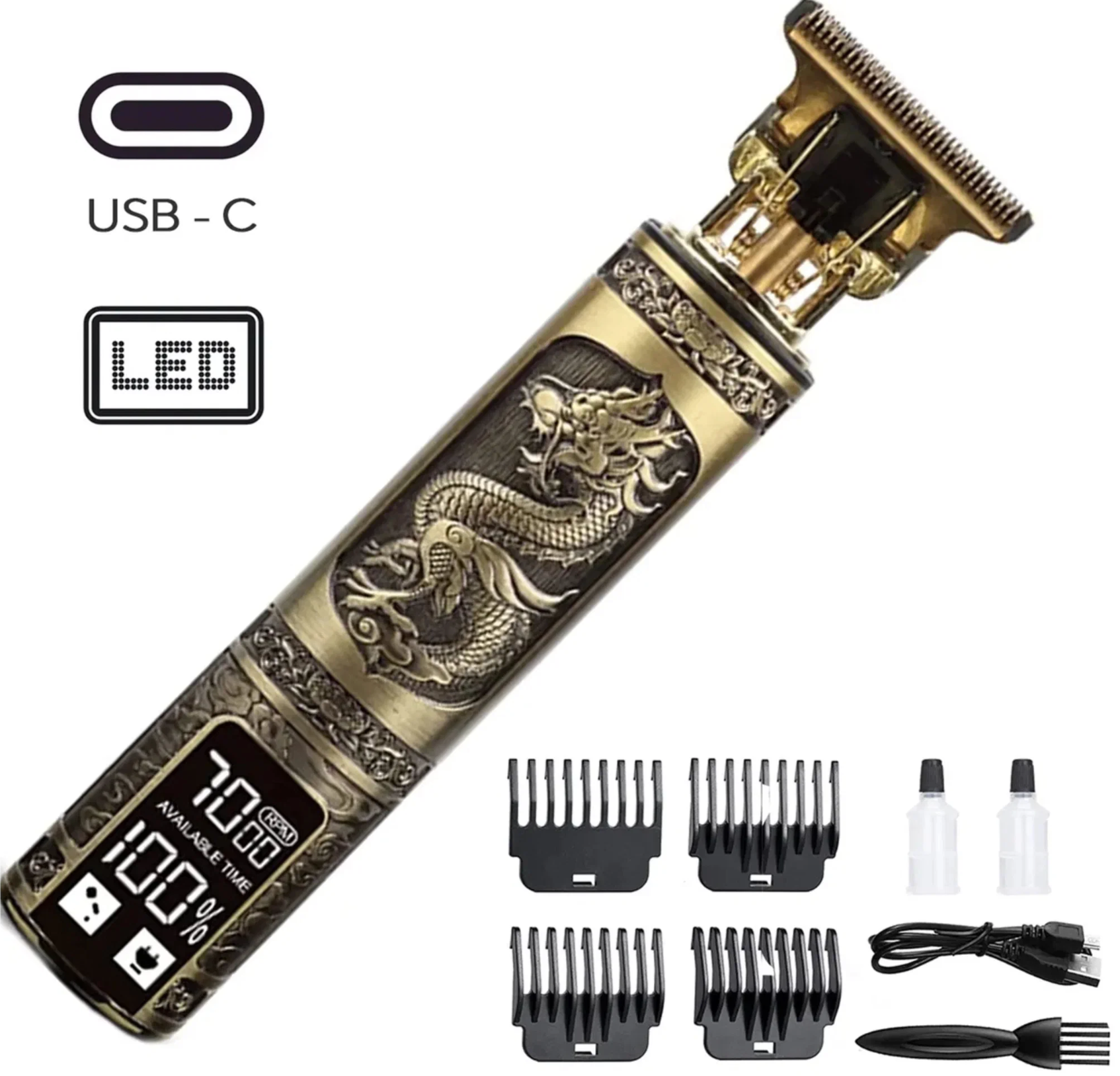 Триммер дракон для бороды и усов с LED-дисплеем LFQ-666-37, золотой информация: