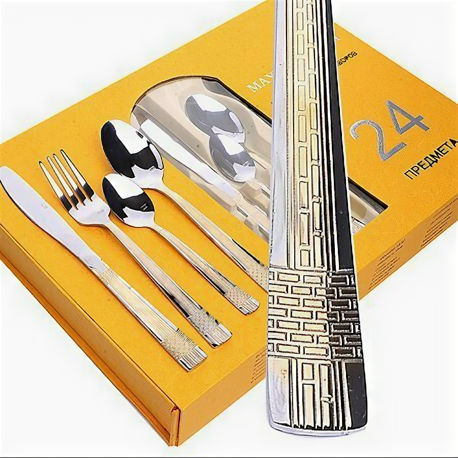 | В набор входит | 6 столовых ложек, 6 вилок, 6 столовых ножей, 6 чайных ложек |