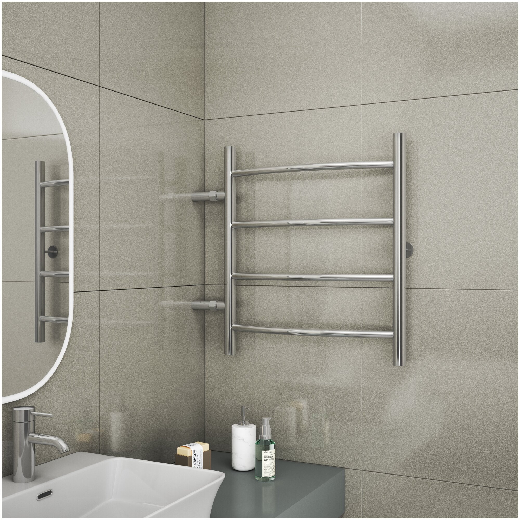 Отзывы на Полотенцесушитель водяной с боковым подключением Маргроид Вид 4 Лесенка, 400 x 600 мм, хром