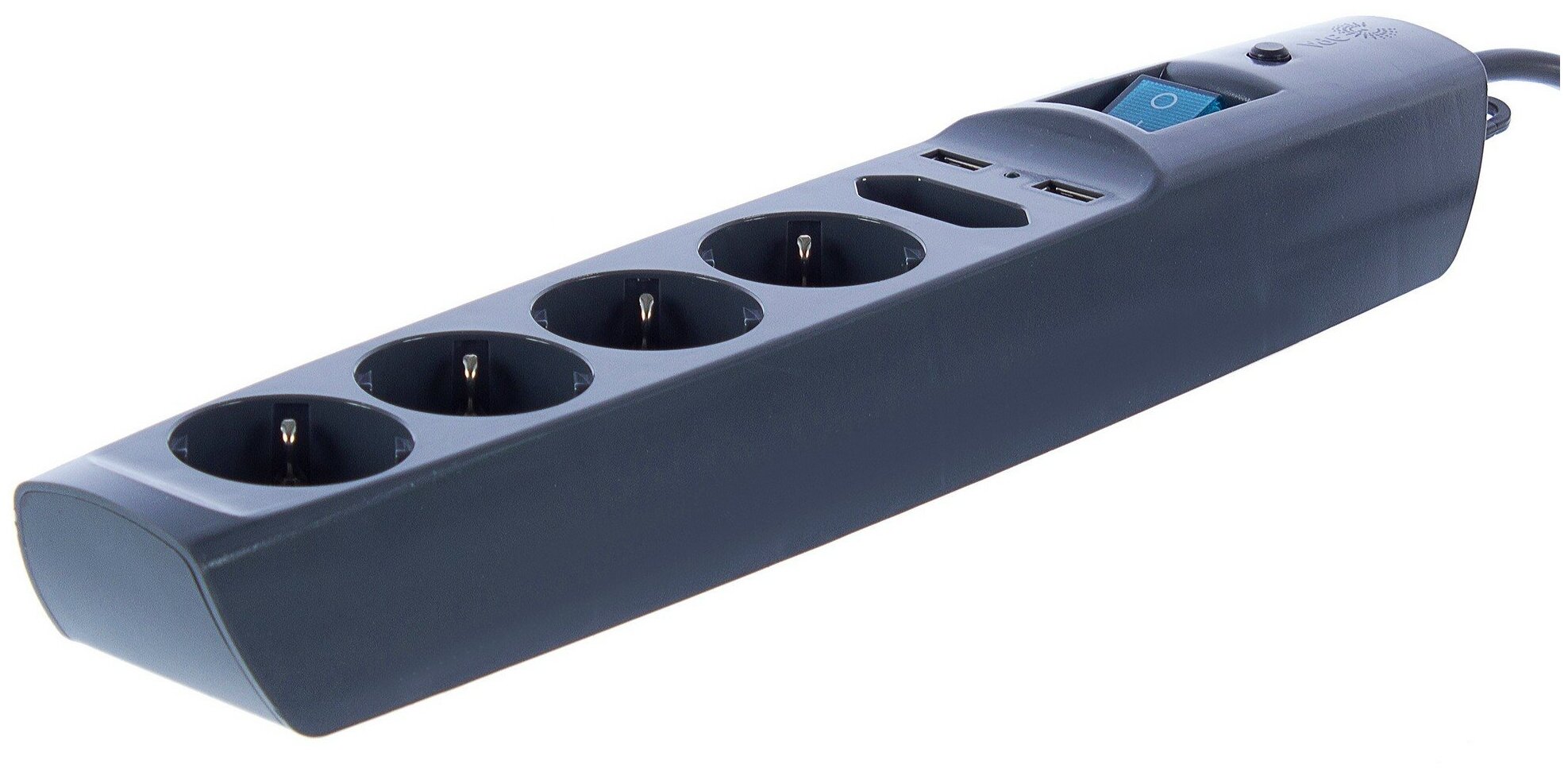 Сетевой фильтр ЭРА USF-M-4es-1.5m-B, 4 розетки, 1.5 м, с/з, 10А / 2200 Вт
