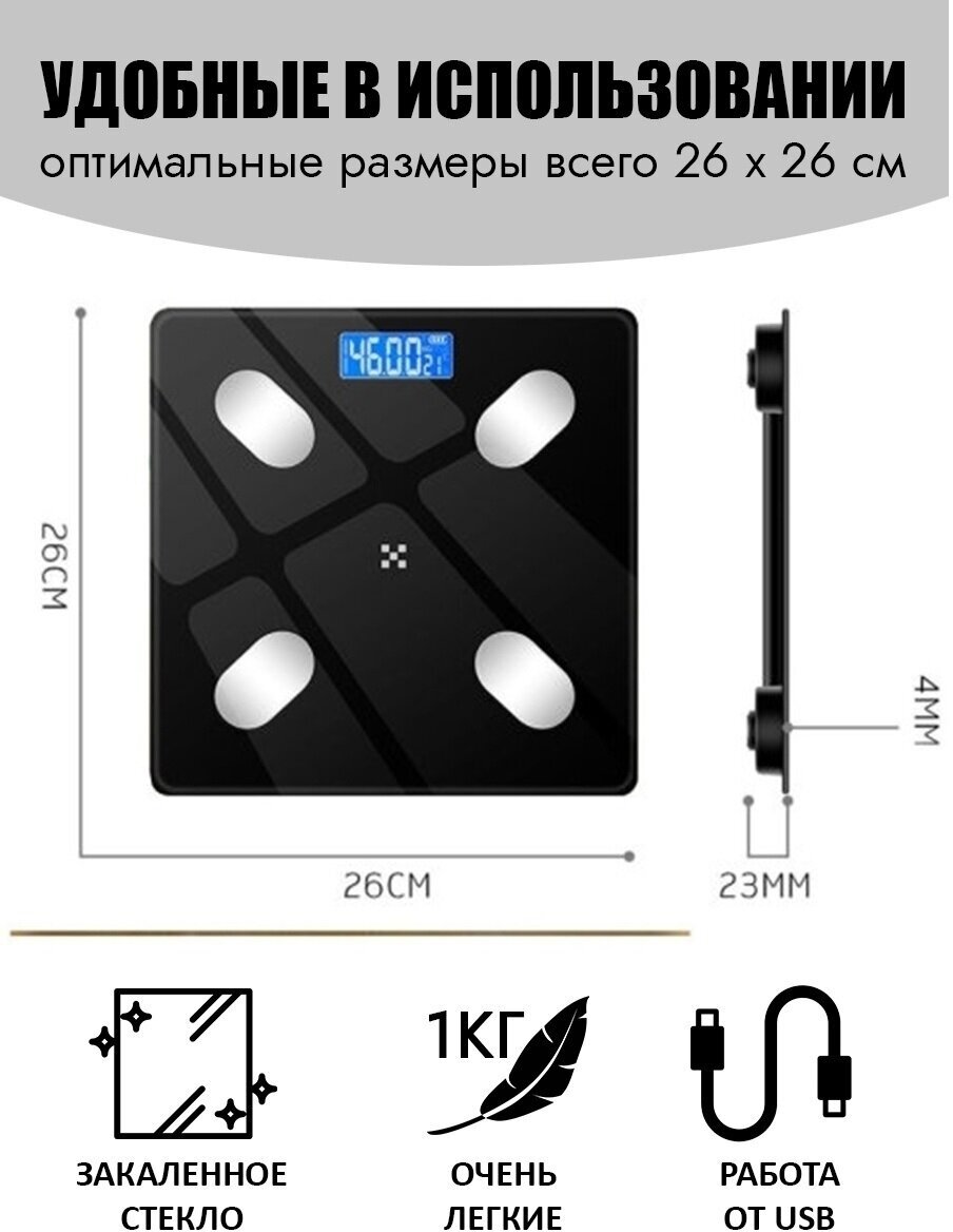 Отзывы на Умные весы с USB зарядкой.Напольные умные весы с расчётом 12 показателей качества тела/диагностические, совместимые для Android, IOS, черные.
