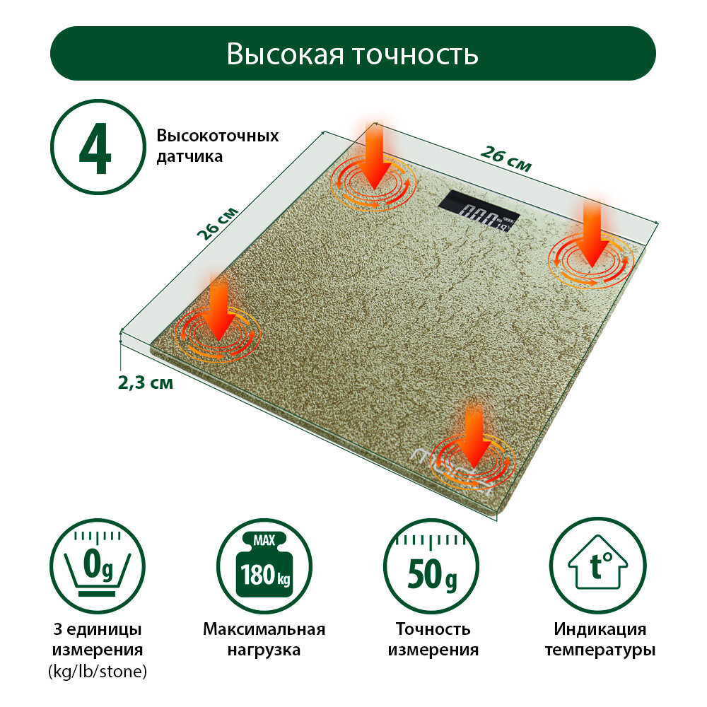 10 цен на MARTA MT-1679 золотой оникс {new} весы напольные сенсор, встроенный термометр
