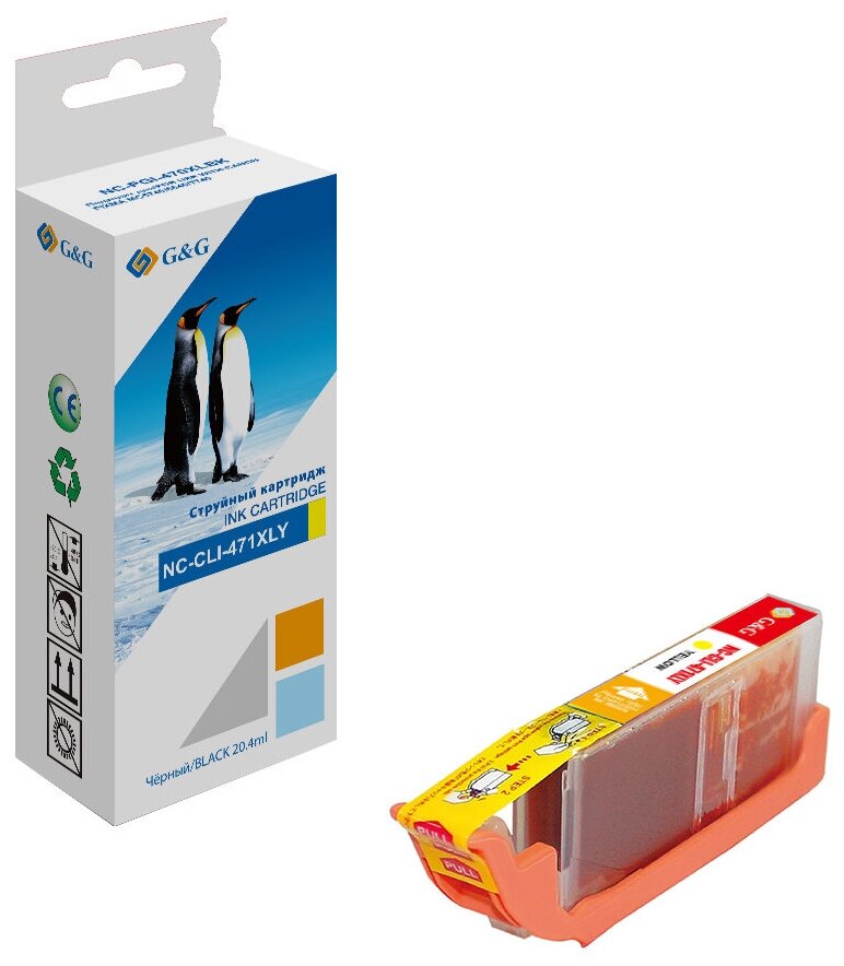 Картридж струйный G&G Nc-cli-471xly Cli-471xl Y желтый (10.8мл) для Canon TS5040/MG5740/MG6840/MG774
