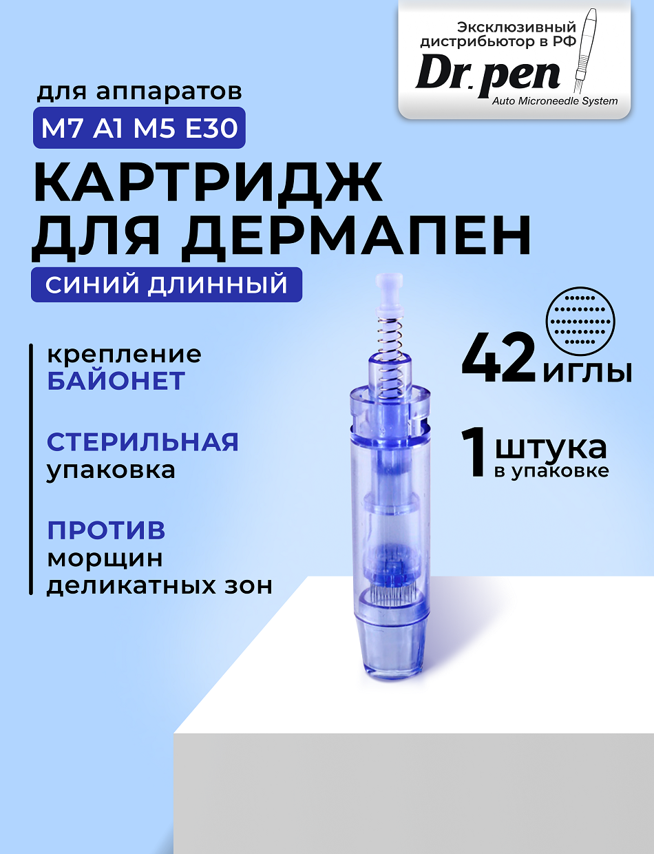 Отзывы на Картридж для дермопен мезопен / на 42 иглы / насадка для аппарата dr pen / дермапен / синий длинный, 1 шт