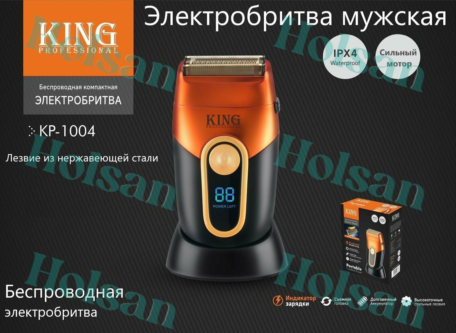 Электробритва мужская 4 в 1 King Professional, влагозащищенная, темно-синяя