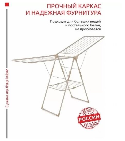 Сушилка для белья Inhome напольная раскладная 181х51х93 см, 21 м бежевая INCD3/2