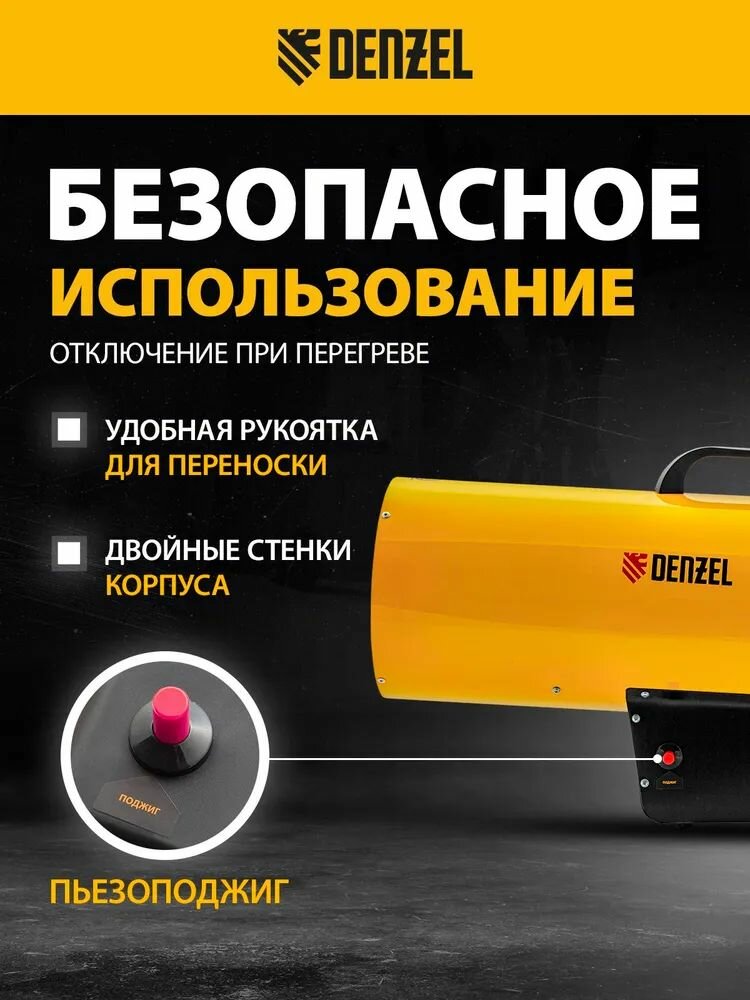 Газовая тепловая пушка GHG-15, 15 кВт, 500 м3/ч, пропан-бутан// Denzel 96477 . 7 755 ₽