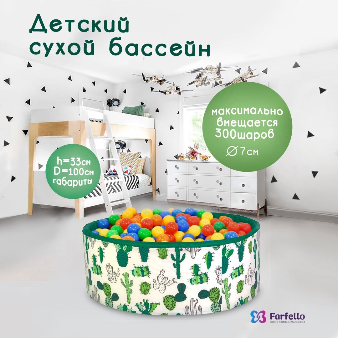 Отзывы на Детский сухой бассейн без шариков Farfello / диаметр 100 см / высота 33 см / принт кактусы / цвет зеленый