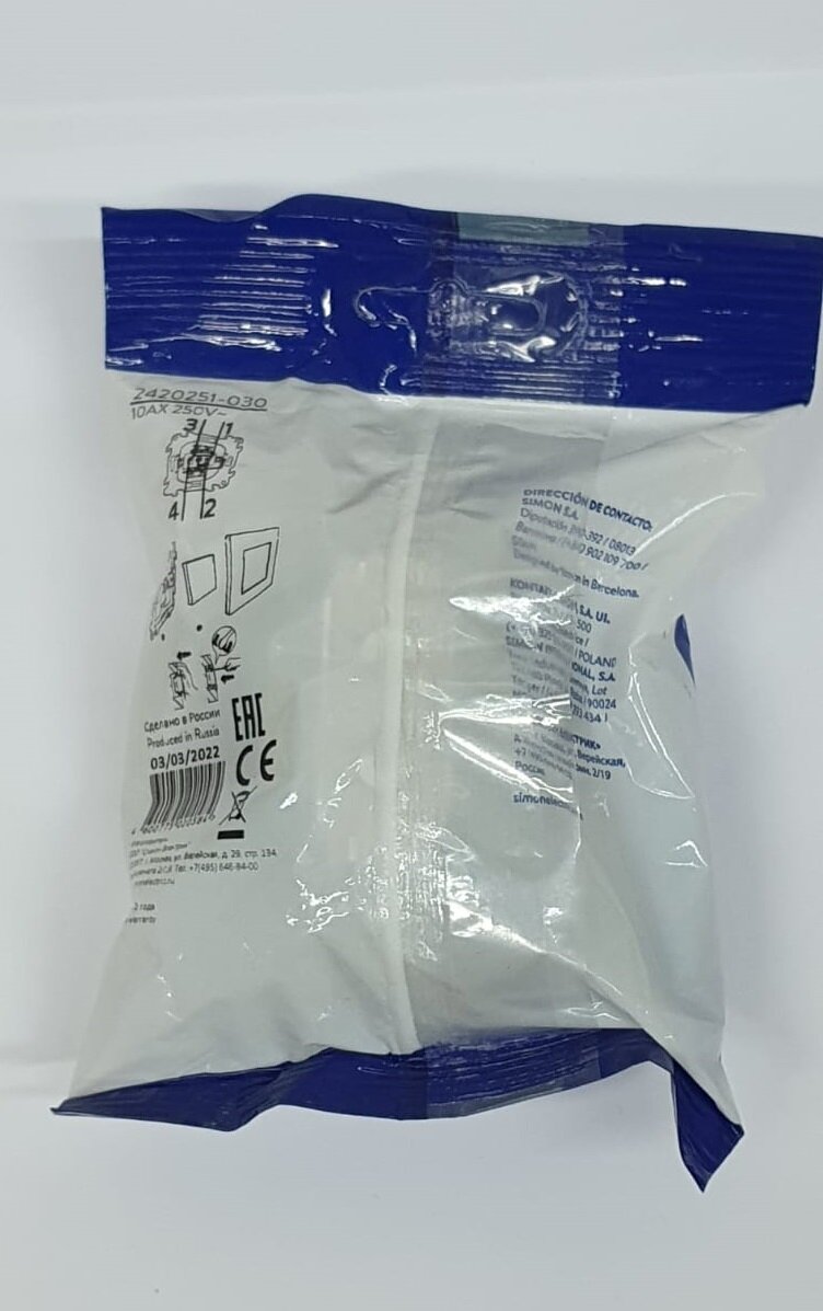 Механизм выключателя проходного 1-кл. 1п 2мод. СП Simon 24 10А IP20 Push&Go бел. Simon 2420251-030 (4шт.в упак.)