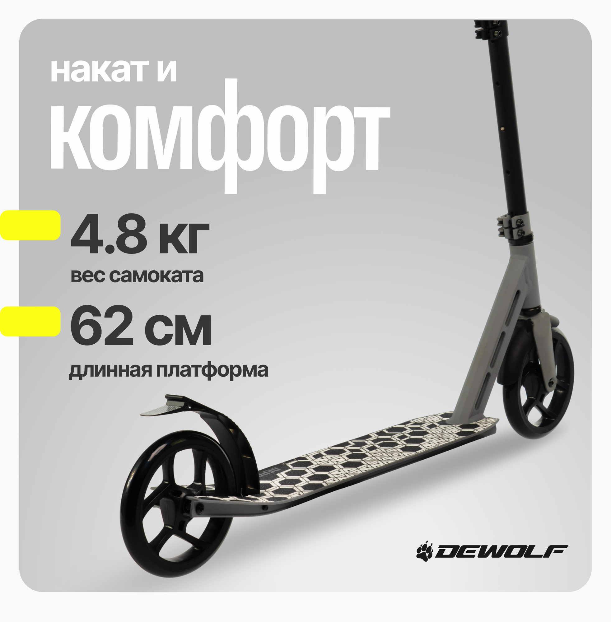 Самокат городской Dewolf DEPORT 200 Gray, DWSU26200200G информация: