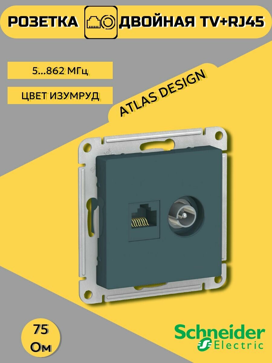 Розетка двойная ТВ + компьютерная RJ45 SCHNEIDER ELECTRIC ATLASDESIGN, кат. 5Е, изумруд