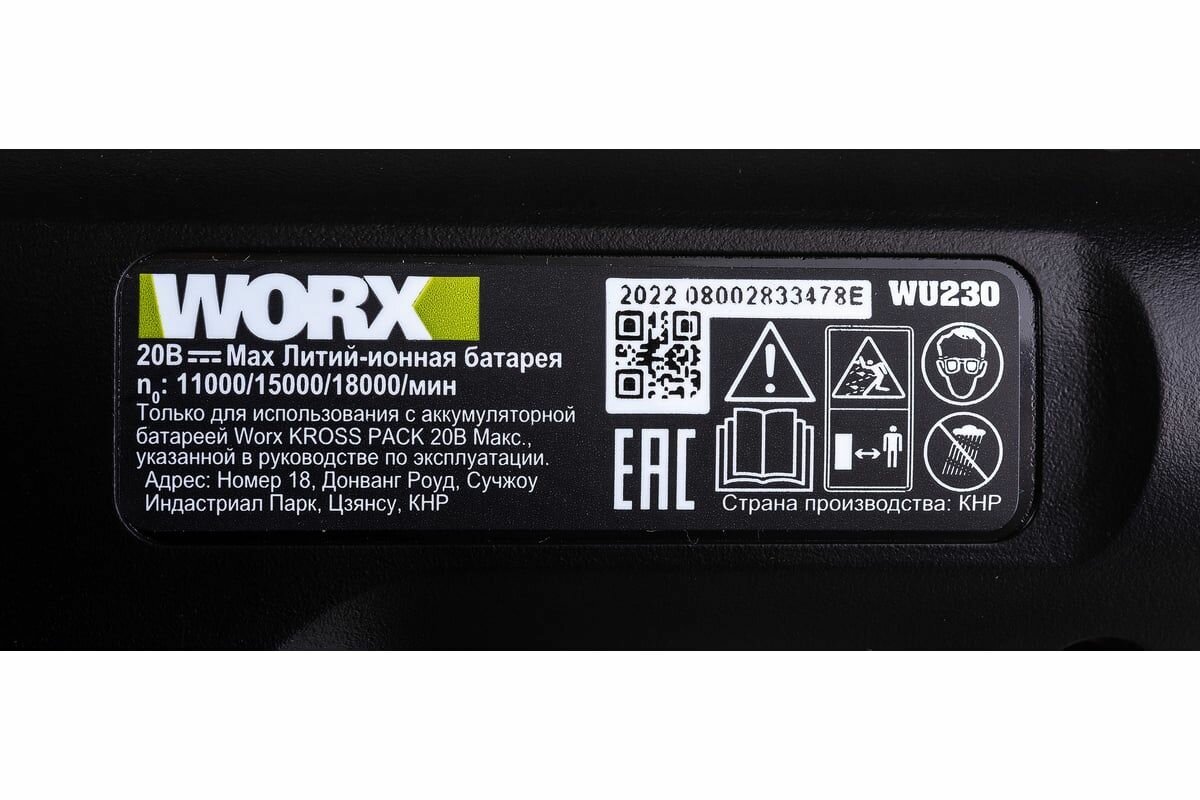 Worx WU230.9, 20 В, без АКБ и ЗУ