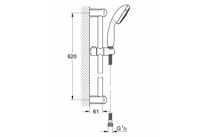 Душевой гарнитур GROHE New Tempesta IV, штанга 600 мм, 9,5 л/мин, хром (27645001)