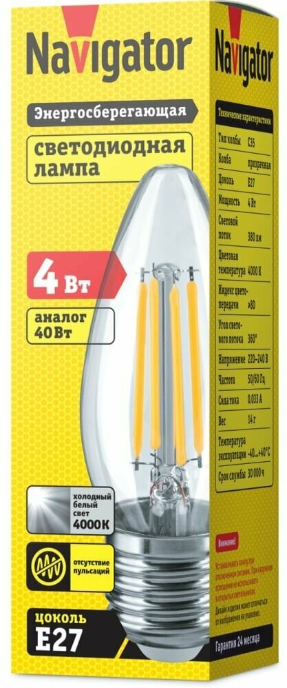 Лампа светодиодная Navigator 14 006 NLL-F-C35-4-230-4K-E27 информация: