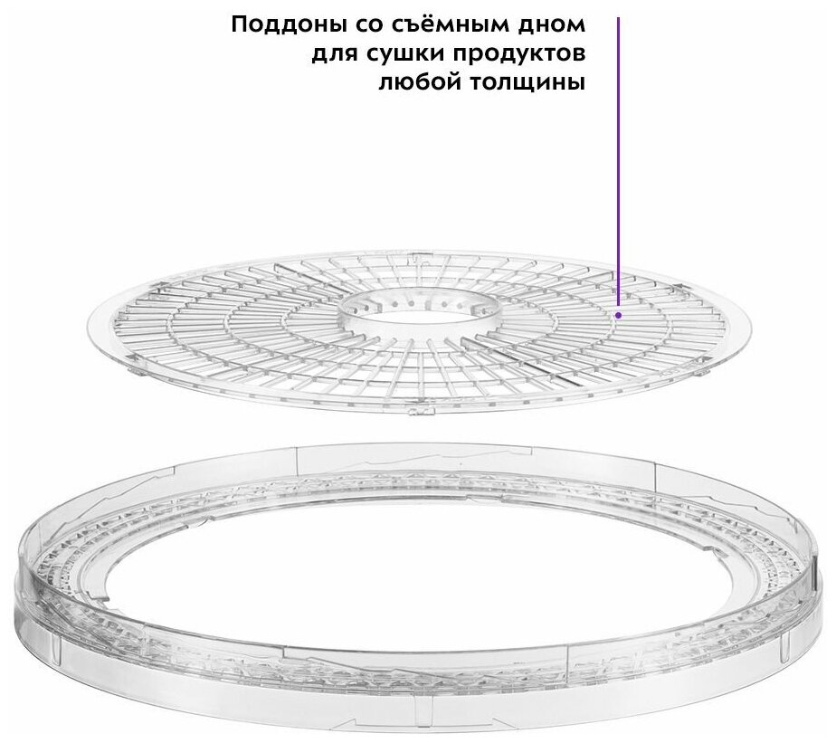 | Дополнительная информация | Комплектация 1. Сушилка для овощей и фруктов — 1 шт. 2. Поддон со съемным дном — 4 шт. 3. Поддон для вращения — 1 шт. 4. Крышка — 1 шт. 5. Руководство по эксплуатации — 1 шт. 6. Коллекционный магнит — 1 шт.* *опционально |