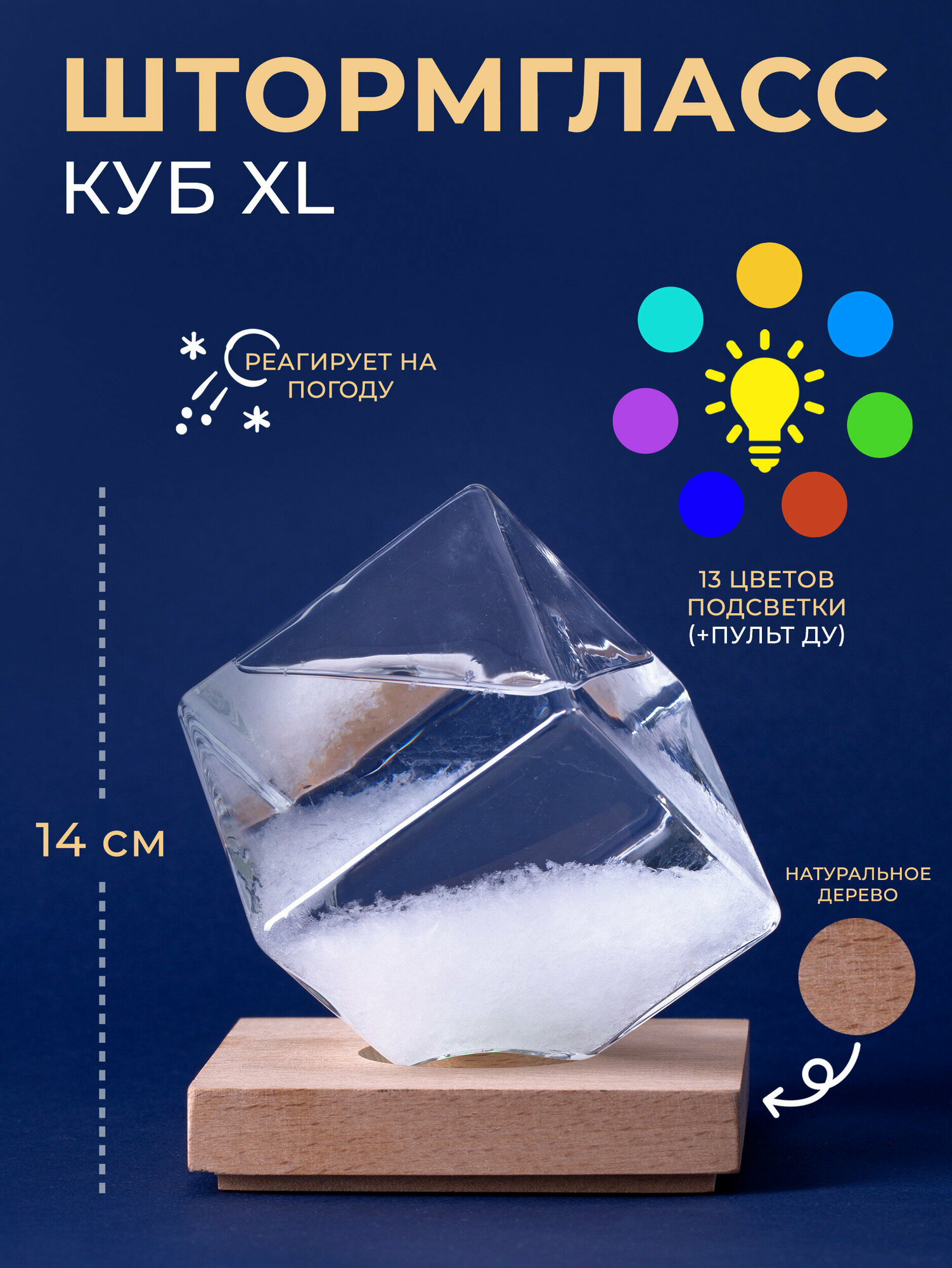 Штормгласс Куб XL с RGB подсветкой и пультом ДУ (14 см) информация: