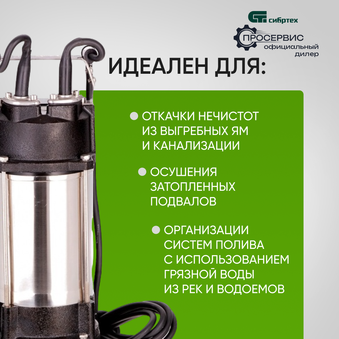 Циркуляционный насос фекальный насос Сибртех СФН1100-Н (1100 Вт) информация: