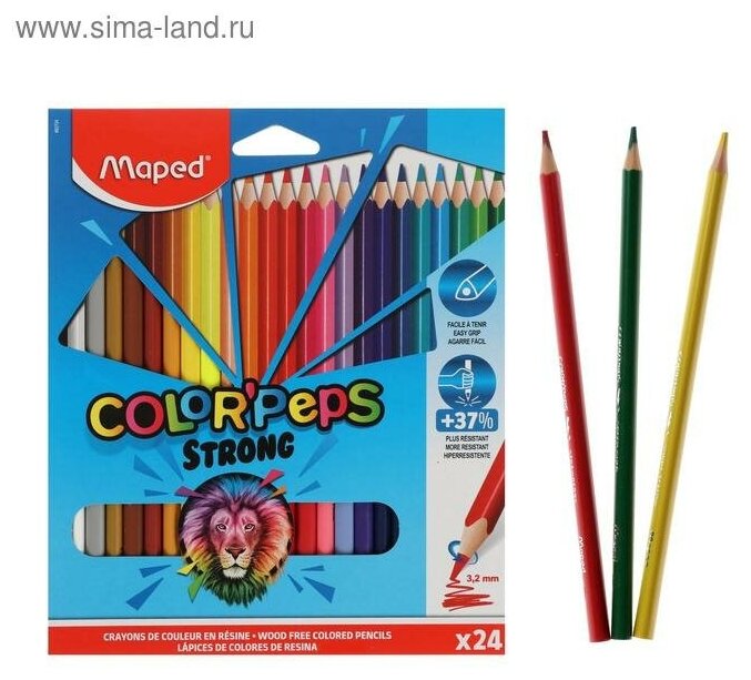 Карандаши цветные MAPED "COLOR PEP'S Strong", набор 24 цвета, грифель 3,2 мм, пластиковый корпус, 862724 181989
