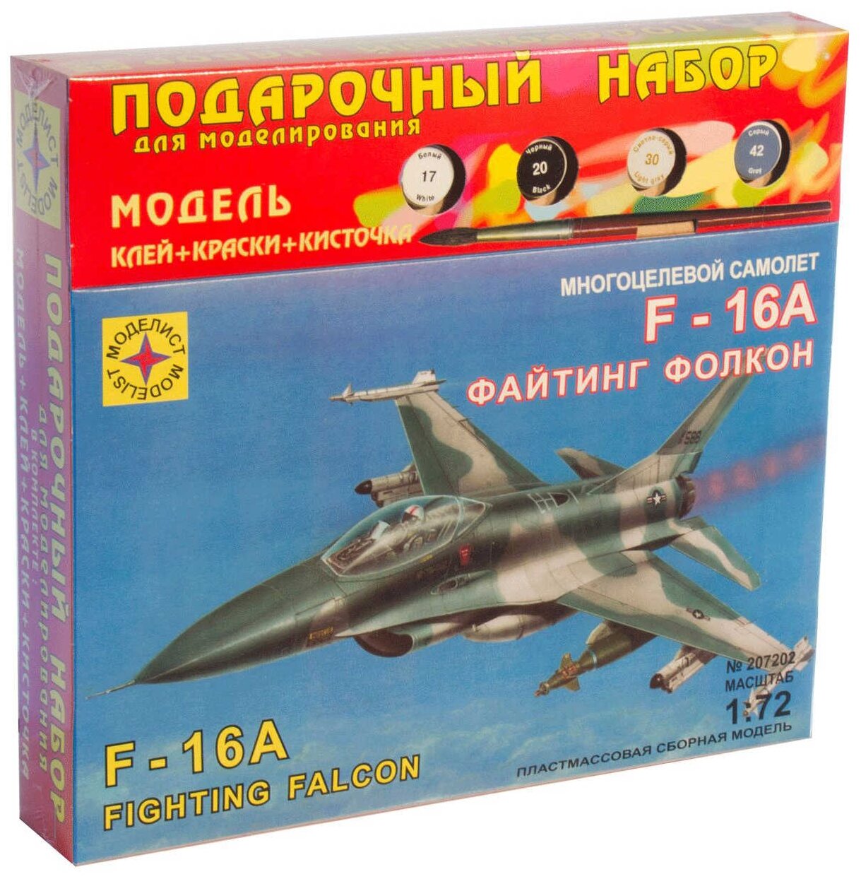 Сборная модель Моделист Многоцелевой самолет F-16A Файтинг Фолкон, 1/72, подарочный набор ПН207202