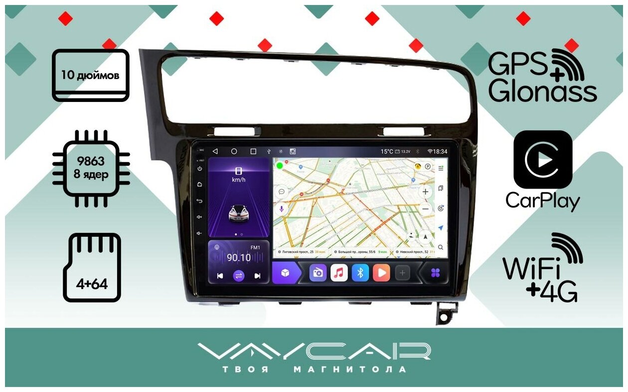 Штатная магнитола Vaycar 10VP4 для VOLKSWAGEN Golf 7 2013+ (4+64, 8 ядер, QLED экран) информация:
