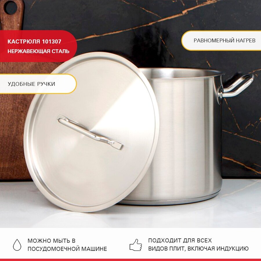 10 цен на Кастрюля с крышкой Viatto нерж с тройным дном 400х400мм объем 50L с дв.ручками, 101307