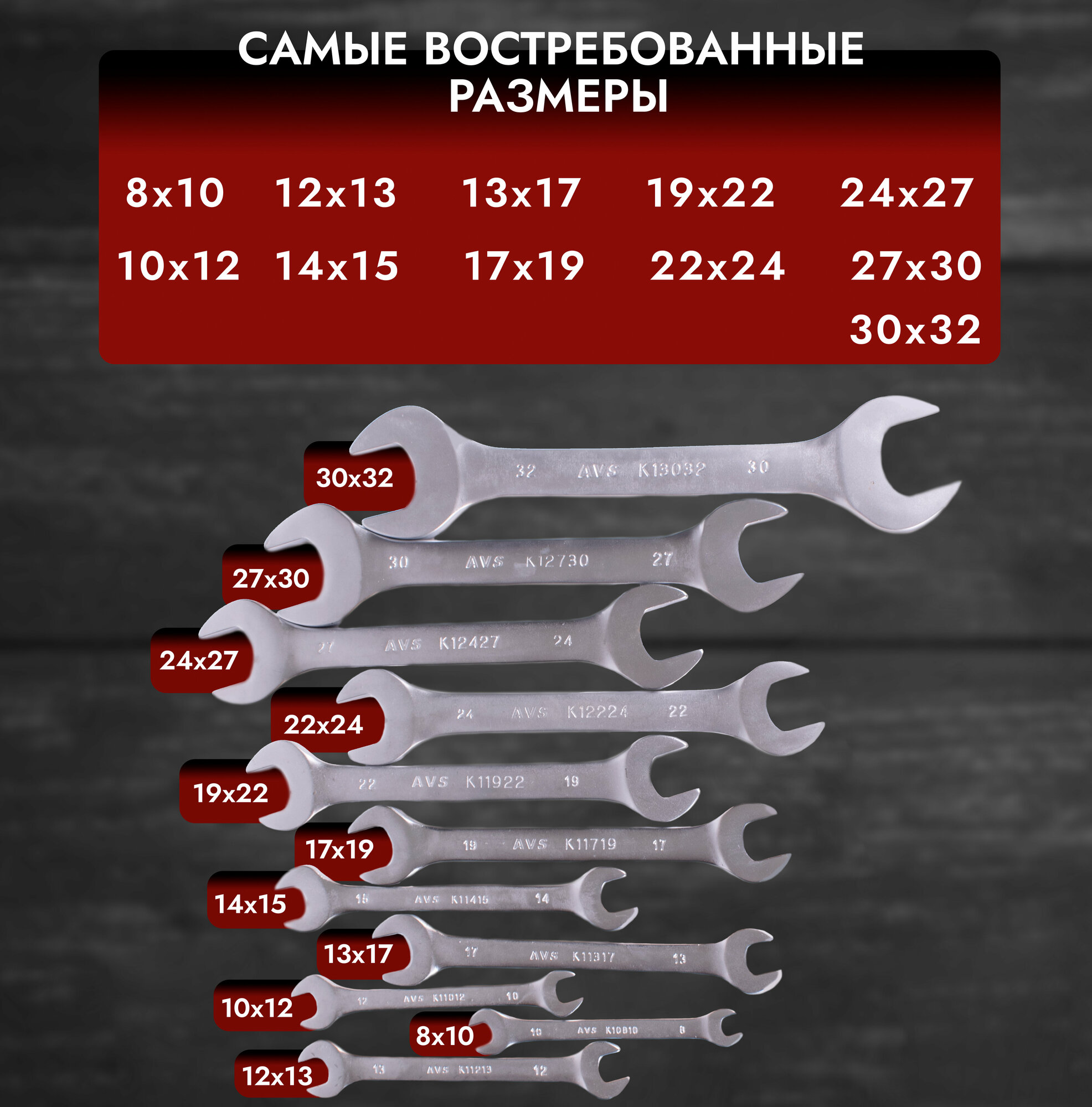 Набор ключей гаечных рожковых в сумке (8-32 мм) (11 предметов) AVS K1N11M информация: